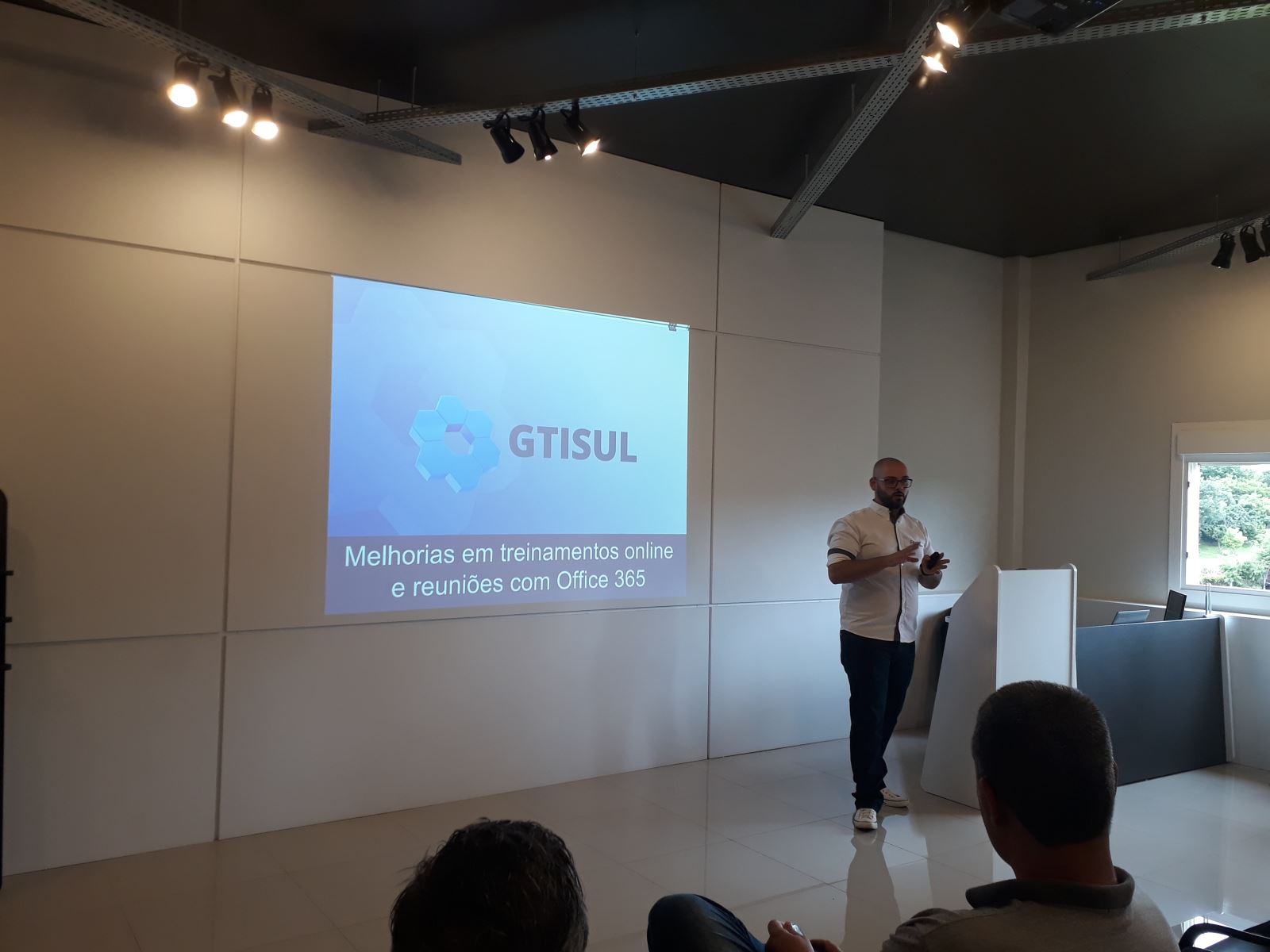 Iniciamos a manhã com o case de sucesso: Melhorias em treinamentos online e reuniões com Office 365. Apresentado por Eduardo A. Duranti, que falou sobre a facilidade, otimização de tempo e maior produtividade que a tecnologia utilizada pela Finger trouxe no momento de fazer treinamentos bem aproveitados de forma presencial e ter treinamentos online com a mesma excelência e baixo custo.