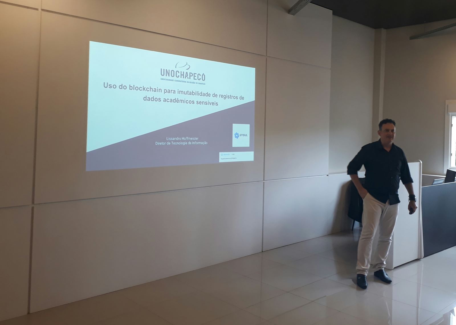 Em depoimento para o grupo GTISUL, Lissandro revela que “Um dos objetivos do GTISUL além de agregar gestores, fortalece relações e difunde o conhecimento, o evento do último sábado proporcionou conhecer cases de sucesso de colegas CIO, uma novidade do GTISUL. Permitiu-nos compartilhar um case da Unochapecó, demonstrar uma solução implementada seus desafios e resultados atingidos, além de reconhecer o trabalho das equipes. Alinhado a estes cases sempre tem parceiros (fornecedores) que colaboram com este desenvolvimento e também são destacados. O tema que escolhemos compartilhar consideramos relevante pela inovação e até ineditismo no segmento educacional, o case Uso do blockchain para imutabilidade de registros de dados acadêmicos sensíveis. Mostramos como é o funcionamento do blockchain, destacando que o mesmo é um conceito e não se trata de um produto, fornecedor ou até mesmo uma implementação única, explicamos que esse conceito serve para controlar vários tipos de dados, transformando essas informações em informações protegidas, onde transações realizadas no blockchain são praticamente imutáveis.”