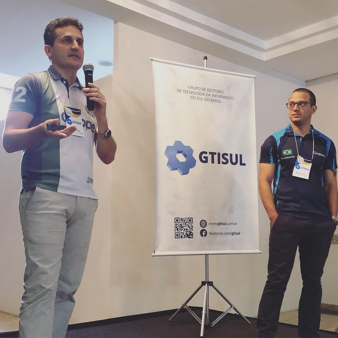 Na segunda palestra, Rodrigo Rocha e Maurício Corrêa, sócios fundadores da Gruppen, esclareceram questões a respeito da lei de proteção de dados, trazendo a palestra " A nova lei de proteção de dados e as camadas de proteção".